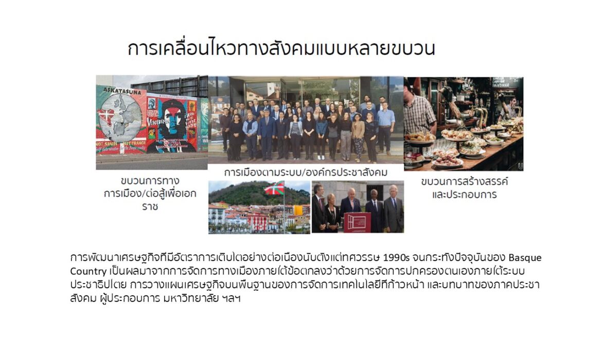 การพัฒนาเศรษฐกิจที่มีอัตราการเติบโตอย่างต่อเนื่องนับตั้งแต่ทศวรรษ 1990s จนกระทั่งปัจจุบันของ Basque Country เป็นผลมาจากการจัดการทางเมืองภายใต้ข้อตกลงว่าด้วยการจัดการปกครองตนเองภายใต้ระบบประชาธิปไตย การวางแผนเศรษฐกิจบนพื้นฐานของการจัดการเทคโนโลยีที่ก้าวหน้า และบทบาทของภาคประชาสังคม ผู้ประกอบการ มหาวิทยาลัย ฯลฯ