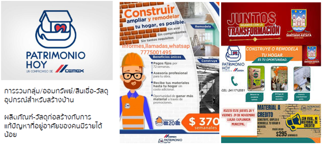 CEMEX จัดให้มีการจัดทำข้อมูลแรงงานที่ทำงานในต่างประเทศกับการสร้างบ้านในพื้นที่ชุมชนที่สัมพันธ์ และโอกาสของร้านค้าวัสดุก่อสร้างในเครือข่าย แล้วจัดให้มีการกระตุ้นการใช้จ่ายเพื่อการดังกล่าวผ่าน “การออมเพื่อสร้างเครดิต” ทั้งนี้ ก็เพราะเห็นศักยภาพของการไหลเวียนของเงินออมจากค่าแรงงานที่มาจากสหรัฐอเมริกาที่มีความสัมพันธ์กับการใช้จ่ายของชาวเม็กซิกัน และการสร้างบ้าน เพื่อให้การส่งเงินกลับบ้านในแต่ละเดือนมีความเชื่อมโยงกับความเป็นไปได้ในการใช้จ่ายและเครดิตที่จะเบิกวัสดุล่วงหน้าจากร้านวัสดุก่อสร้าง โดยเรียกชื่อแคมเปญนี้ว่า Patrimonio Hoy แปลว่า ทรัพย์ของเราในวันนี้ (แทนที่จะเป็นอนาคต) โดยยืมแนวคิดเรื่อง Microlending คือ การกู้เงินมาสร้างบ้าน เปลี่ยนเป็นเบิกวัสดุก่อสร้างมาสร้างบ้านและผ่อนชำระคืน เป็นงวด ๆ ตามความสามารถของการออม และ Microcredit (ที่รวมกันของฝ่ายผู้กู้) โดยแบ่งงวดการออมเป็น 70 งวด ๆ ละสัปดาห์ โดยที่จำนวน 70 งวด (สัปดาห์) หรือ 18 เดือน หรือ 1 ปี 6 เดือน ซึ่งจะมีการคำนวณเป็นเวลาของการสร้างบ้าน และการใช้วัสดุและสิ่งจำเป็นเป็นระยะ ๆ ที่สอดคล้องกันไป