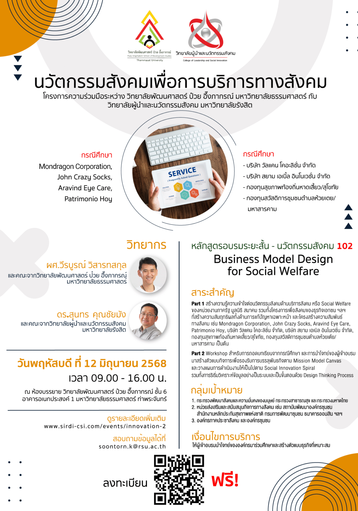SI 102 – นวัตกรรมสังคมเพื่อการบริการทางสังคม (Social Services)