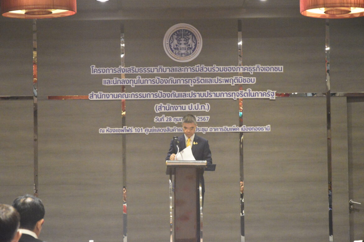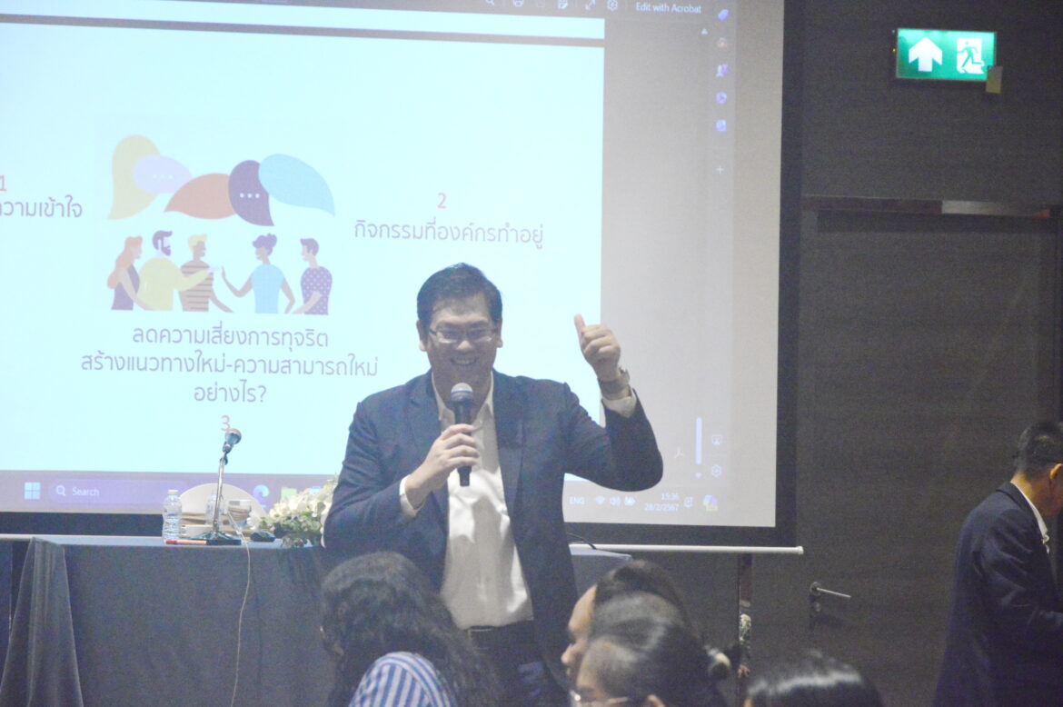 320 Post Views: 338 ภาพกิจกรรมโครงการส่งเสริมธรรมาภิบาลและการมีส่วนร่วมของภาคธุรกิจเอกชนและนักลงทุนในการป้องกันการทุจริตและประพฤติมิชอบ สำนักงานคณะกรรมการป้องกันและปราบปรามการทุจริตในภาครัฐ(สำนักงาน ป.ป.ท.) วันที่ 28 กุมภาพันธ์ 2567 ณ ห้องแซฟไฟร์ 101 ศูนย์แสดงสินค้าและการประชุม อาคารอิมแพ็ค เมืองทองธานี ข่าวที่เกี่ยวข้อง ป.ป.ท. จับมือ ม.รังสิต ลงนาม MOU พัฒนานวัตกรรมการจัดการและธรรมาภิบาล ยกระดับและเพิ่มประสิทธิภาพการบริการภาครัฐแก่นักลงทุนและชาวต่างชาติ 0 comments FacebookLinkedinWhatsappLINEEmail sirdi previous post โครงการส่งเสริมธรรมาภิบาลและการมีส่วนร่วมของภาคธุรกิจเอกชนและนักลงทุนในการป้องกันการทุจริตและประพฤติมิชอบ next post Soft Power ประสบการณ์ของภาคปฎิบัติการที่เกาหลีใต้ Related Posts โครงการการพัฒนากิจการขององค์กรภาคประชาสังคม ตามกรอบวิสาหกิจเพื่อสังคม 19/06/2024 โครงการส่งเสริมธรรมาภิบาลและการมีส่วนร่วมของภาคธุรกิจเอกชนและนักลงทุนในการป้องกันการทุจริตและประพฤติมิชอบ 23/02/2024 กิจกรรมการสร้างสรรค์ทักษะสำหรับการทำงานประสานความร่วมมือ (Creative Collaboration) 22/02/2024 การจัดการเชิงกลยุทธ์ : ผู้มีส่วนได้เสีย กิจการสัมพันธ์ และประเด็นวิกฤติ 20/07/2023 การจัดการเชิงกลยุทธ์ : ผู้มีส่วนได้เสีย กิจการสัมพันธ์ และประเด็นวิกฤติ 19/06/2023 หลักสูตรอบรมระยะสั้น KM for Change #2 12/06/2023 หลักสูตรอบรมระยะสั้น KM for Change #1 27/04/2023 Leave a Comment Cancel Reply Save my name, email, and website in this browser for the next time I comment. Δ